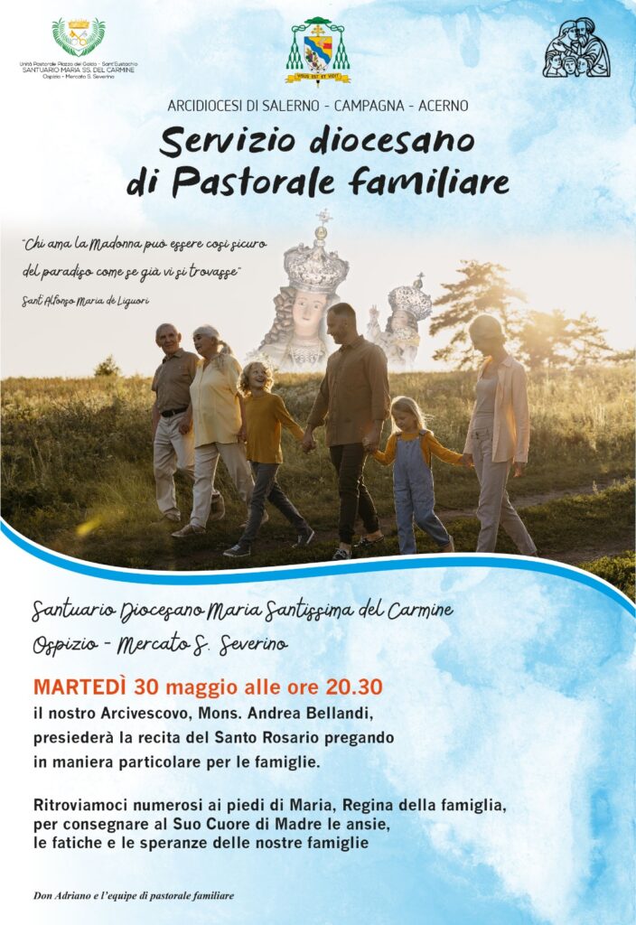 Martedì 30 maggio alle ore 20.30, a conclusione del mese mariano, il nostro Arcivescovo guiderà la recita del Santo Rosario presso il Santuario diocesano di Maria SS.ma del Carmine in Ospizio di Mercato San Severino (SA) organizzata dal Servizio diocesano di ...