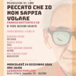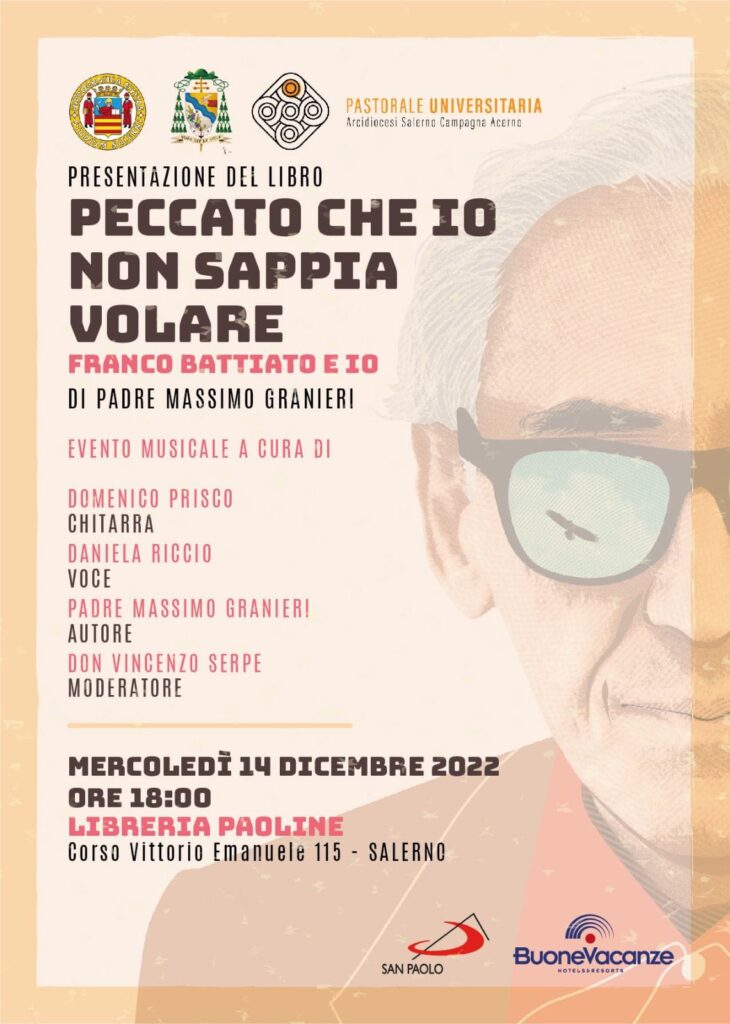 Mercoledì 14 dicembre alle ore 18.00 presso la Libreria Paoline di Salerno, si terrà la presentazione del nuovo libro di Padre Massimo Granieri “Peccato che io non sappia volare” organizzata dalla Pastorale Universitaria.
