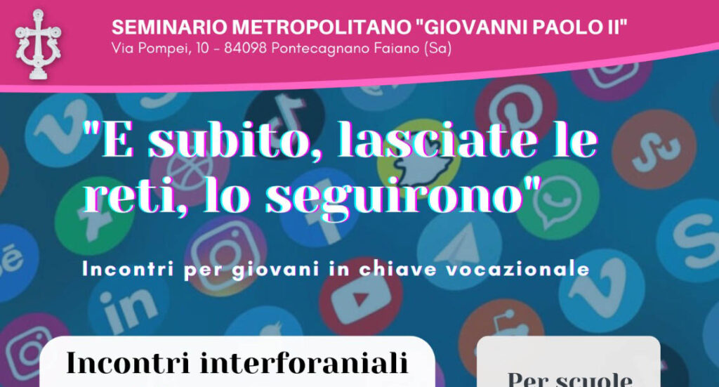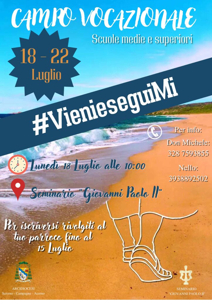 Dal 18 al 22 luglio presso il Seminario Metropolitano “Giovani Paolo II” si terrà il consueto Campo Vocazionale rivolto ai ragazzi di scuola media e superiore per un’esperienza di riflessione, gioco, fraternità e preghiera in chiave vocazionale