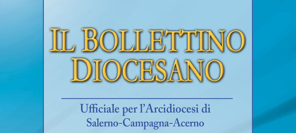 È disponibile il nuovo numero del Bollettino Diocesano che ripercorre il cammino della nostra Chiesa Diocesana. Gli atti, i documenti, le nomine e i principali eventi dell’Arcidiocesi di Salerno-Campagna-Acerno, raccolti nel Bollettino semestrale diocesano.