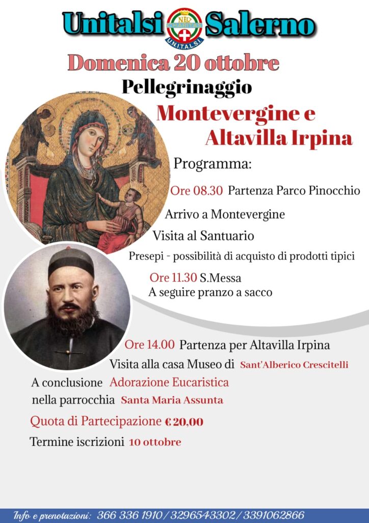 Domenica 20 ottobre l’Unitalsi Salerno ha organizzato un pellegrinaggio a Montevergine che prevede la partecipazione alla Messa, la visita al Santuario e la visita alla casa museo di S. Alberico Crescitelli in Altavilla Irpina. Il termine per le iscrizioni è ...