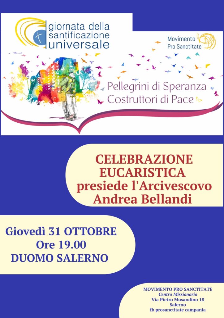 In occasione della Giornata della Santificazione Universale, giovedì 31 ottobre, alle ore 19.00, presso la Cattedrale di Salerno avrà luogo la Celebrazione Eucaristica presieduta da S.E. Mons. Andrea Bellandi. Questa Giornata speciale, ideata e promossa fin dal 1957 dal Servo ...