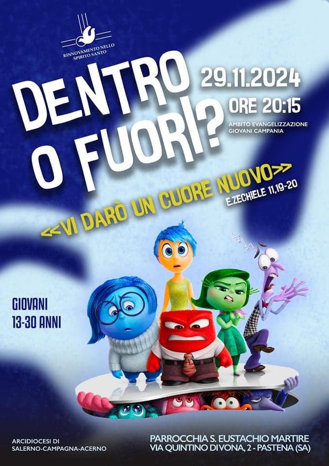 Venerdì 29 novembre, alle ore 20.15, presso la Parrocchia di San Eustachio Martire, in via Quintino Divona 2 a Pastena, Salerno, si terrà un evento rivolto ai giovani dai 13 ai 30 anni organizzato dall’Ambito Evangelizzazione Giovani Campania del Rinnovamento ...