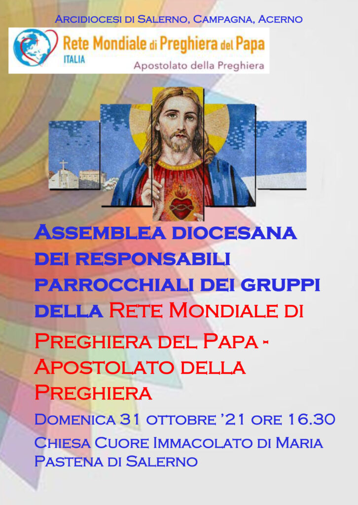 Domenica 31 ottobre alle 16.30 presso la Parrocchia del Cuore Immacolato di Maria in Salerno, Don Antonio Montefusco, responsabile diocesano della Rete Mondiale di Preghiera del Papa – Apostolato della Preghiera, invita i responsabili parrocchiali a partecipare all’Assemblea Diocesana per organizzare ...