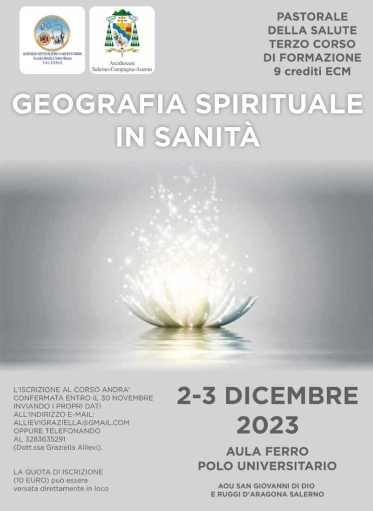 Il Servizio per la Pastorale della Salute organizza un corso di formazione che si terrà il 2 e il 3 dicembre presso l’aula Ferro del Polo Universitario AOU San Giovanni di Dio e Ruggi D’Aragona, Salerno. Il tema del corso ...