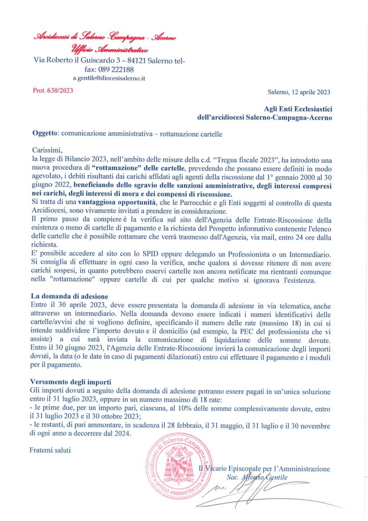 L’Ufficio Amministrativo dell’Arcidiocesi di Salerno-Campagna-Acerno comunica che, per gli Enti Non Commerciali che svolgono alcune tipologie di attività, comprese quelle di religione e di culto, vige l’obbligo di presentare, entro il 30 giugno 2025, la Dichiarazione IMU relativa all’anno 2024. ...