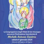 Sabato 6 gennaio, solennità dell’Epifania del Signore, alle ore 18.00 nella la rettoria di San Domenico a Solofra per l’imposizione delle mani e la preghiera di S.E. Mons. Andrea Bellandi viene ordinato presbitero il diacono padre Michele Antonio Santoro. Il novello ...