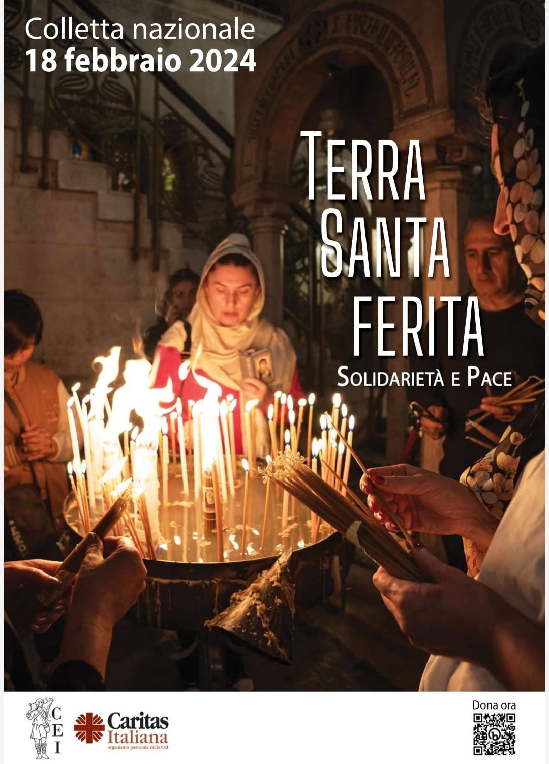 La Presidenza della Conferenza Episcopale Italiana ha indetto per domenica 18 febbraio (Prima Domenica di Quaresima) una colletta nazionale, da tenersi in tutte le chiese italiane, quale segno concreto di solidarietà e partecipazione di tutti i credenti ai bisogni, materiali e spirituali, delle popolazioni colpite dal conflitto in Terra Santa.