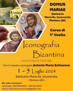 Dal 1 al 5 luglio presso la Domus Mariae del Santuario dell’Incoronata di Montoro (Av) si terrà un corso di primo livello di Iconografia Bizantina con il maestro iconografo Antonio Maria Schiavone.