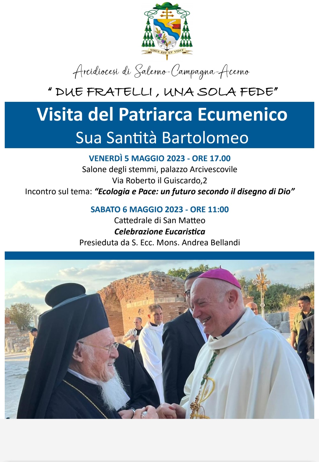 Sarà a Salerno il 5 e il 6 maggio 2023, Sua Santità Bartolomeo I, Patriarca Ecumenico di Costantinopoli, guida della Chiesa Ortodossa, per celebrare la Traslazione in città delle spoglie mortali del Patrono San Matteo, avvenuta nel lontano 6 maggio 954.