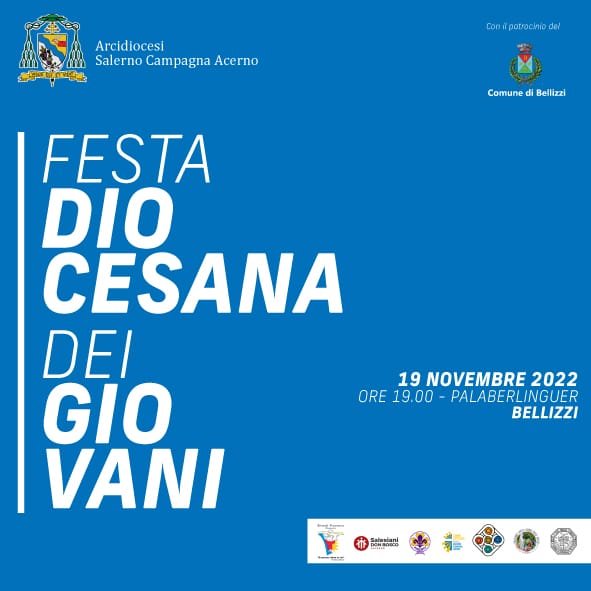 Sabato 19 novembre presso il PalaBerlinguer di Bellizzi si tiene la Festa Diocesana dei Giovani. Testimonianze, musica e condivisione a cura del Servizio Diocesano di Pastorale Giovanile, unitamente al Settore Giovani di Azione Cattolica, all’AGESCI, alla Gioventù Francescana, al Movimento Giovanile Salesiano, ai Salesiani, ai Neocatecumenali e all’Ufficio Missionario.
