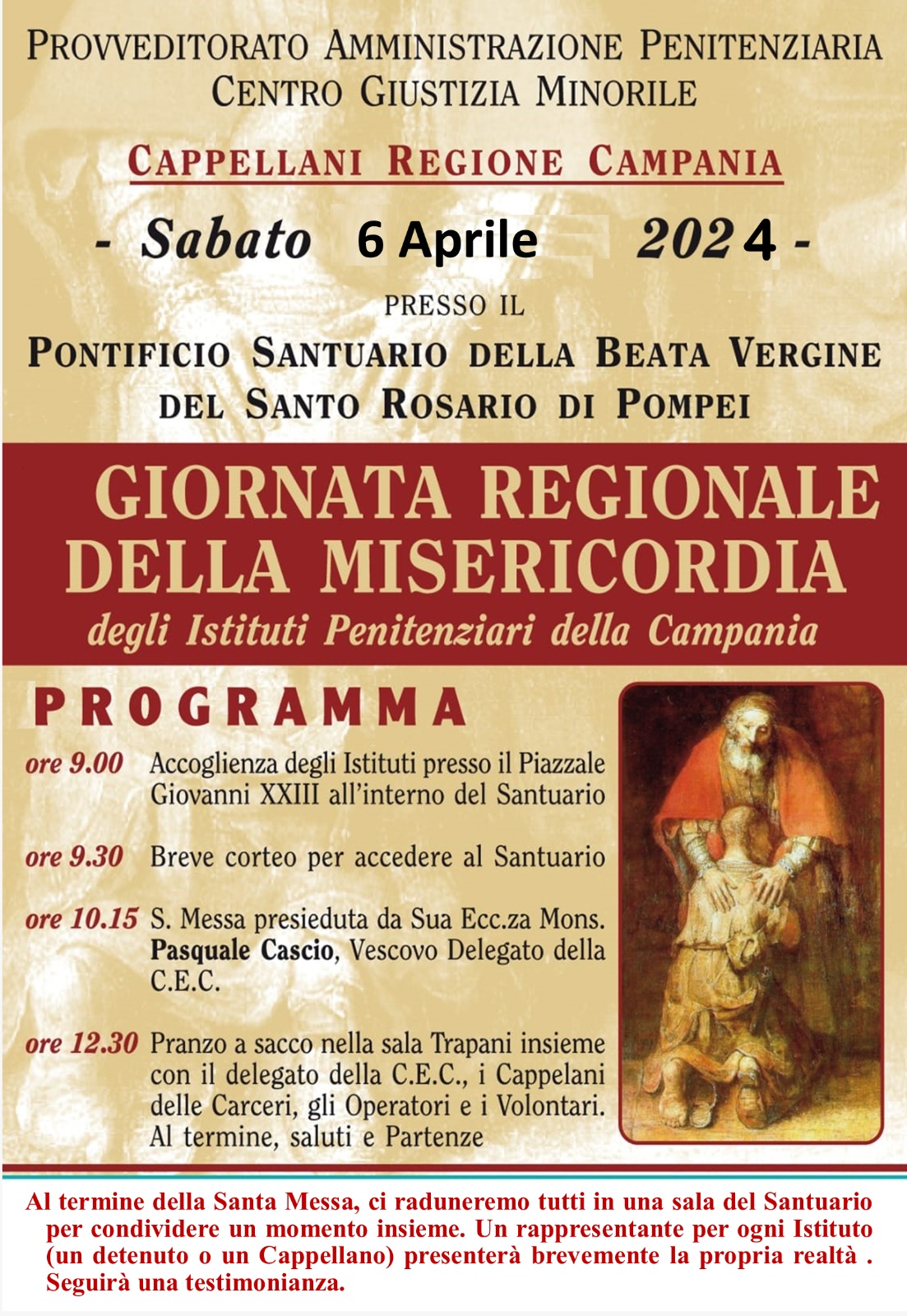 Sabato 6 aprile si svolge a Pompei, presso il Pontificio Santuario della Beata Vergine del Rosario, la Giornata Regionale della Misericordia degli Istituti Penitenziari della Campania.