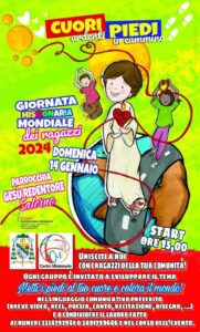 Domenica 14 gennaio, presso la parrocchia Gesù Redentore, Salerno, alle ore 15.00 si terrà la Giornata Missionaria Mondiale dei ragazzi dal titolo “Cuori ardenti e piedi in cammino”.