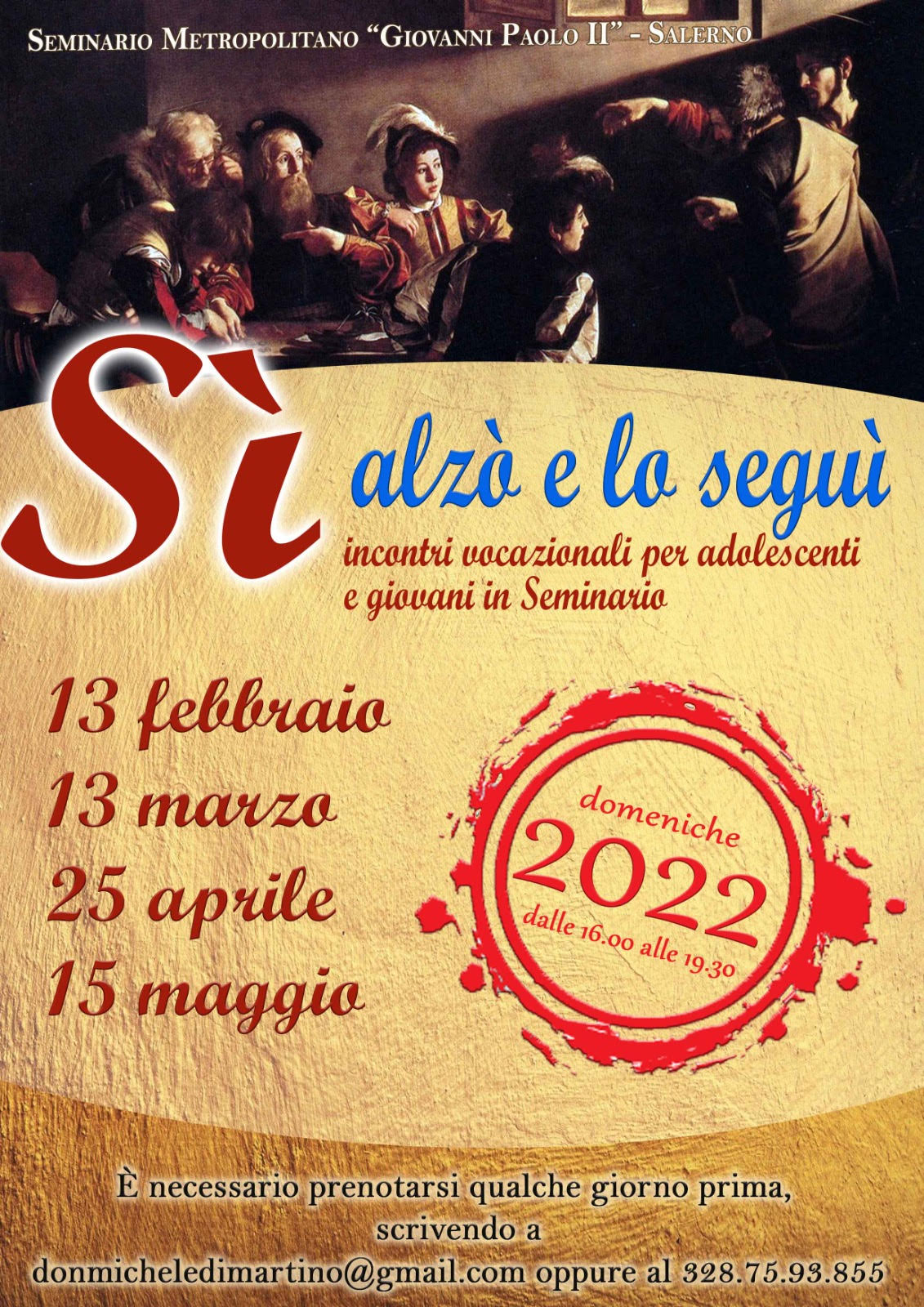 Questi quattro incontri si terranno presso il Seminario Metropolitano di domenica dalle ore 16.00 una volta al mese nelle seguenti date: