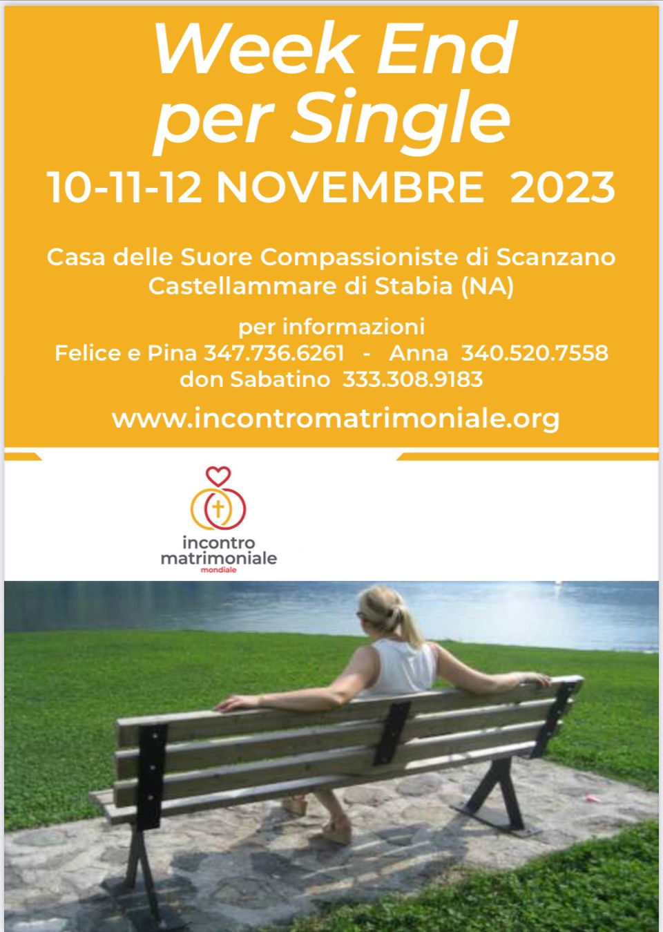 Si rivolge a persone vedove, separate e/o divorziate o che semplicemente vivono sole. Il WE Single da la possibilità di confrontarsi con persone che vivono le stesse situazioni di solitudine. Vuole aiutare a fare un incontro con una persona non sempre facile da incontrare: noi stessi. Per capire come ci “ascoltiamo” e come incontriamo chi siamo veramente.
