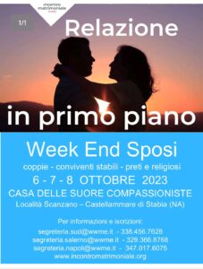 Due mesi ricchi di appuntamenti quelli di ottobre e novembre per tutti coloro che desiderano migliorare la propria capacità di comunicare e di vivere la relazione di coppia e la relazione con gli altri. I Week End organizzati dal”associazione Incontro Matrimoniale invitano ai partecipanti a riflettere sulle proprie esperienze di relazione, stimolati dalle testimonianze di vita concreta presentate da un team di animatori.