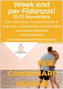 Per i Fidanzati che desiderano conoscersi bene, approfondire e verificare la loro relazione, per quelli prossimi al matrimonio o che hanno difficoltà a seguire il percorso in parrocchia, una esperienza straordinaria. Il percorso, per le tematiche che affronta, è valido come preparazione al matrimonio. Si richiede per chi partecipa la presenza in sede per tutto il percorso. Alla fine sarà rilasciato l’attestato necessario per la promessa di matrimonio.