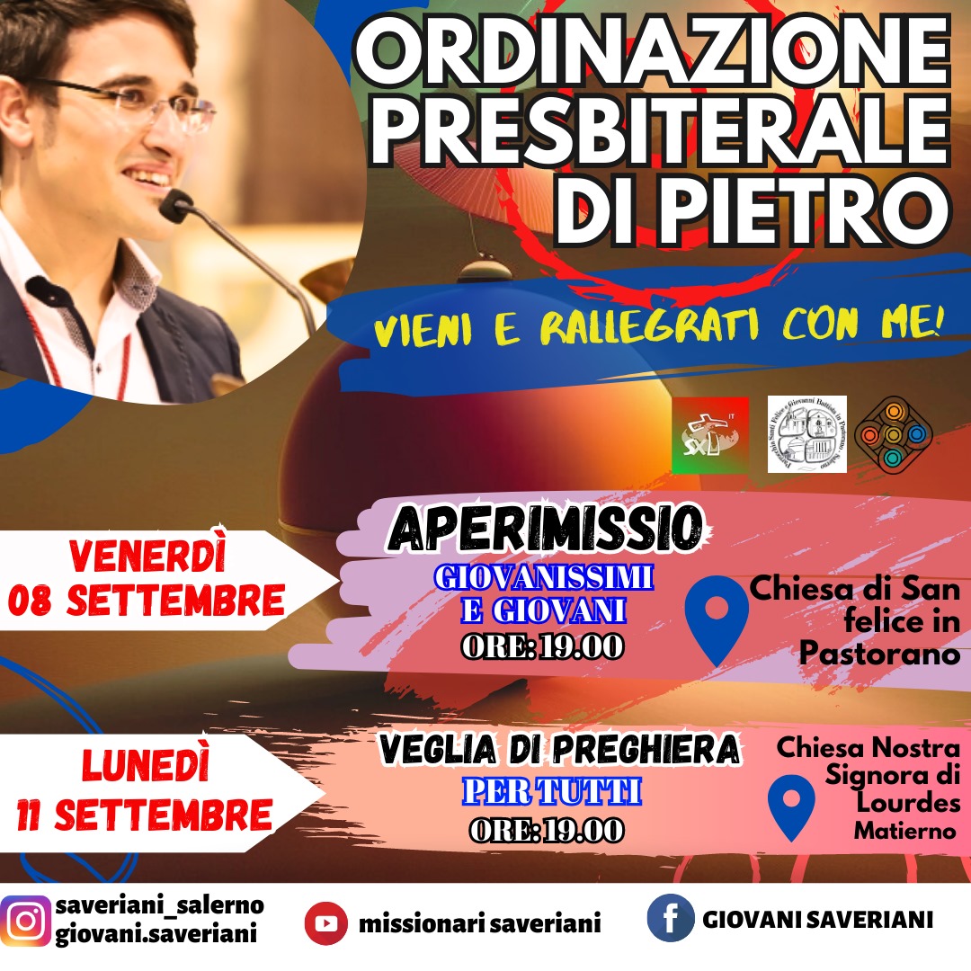 Il novello presbitero presiede per la prima volta l’Eucaristia domenica 17 settembre alle ore 10.30 presso la chiesa Nostra Signora di Lourdes di Matierno.