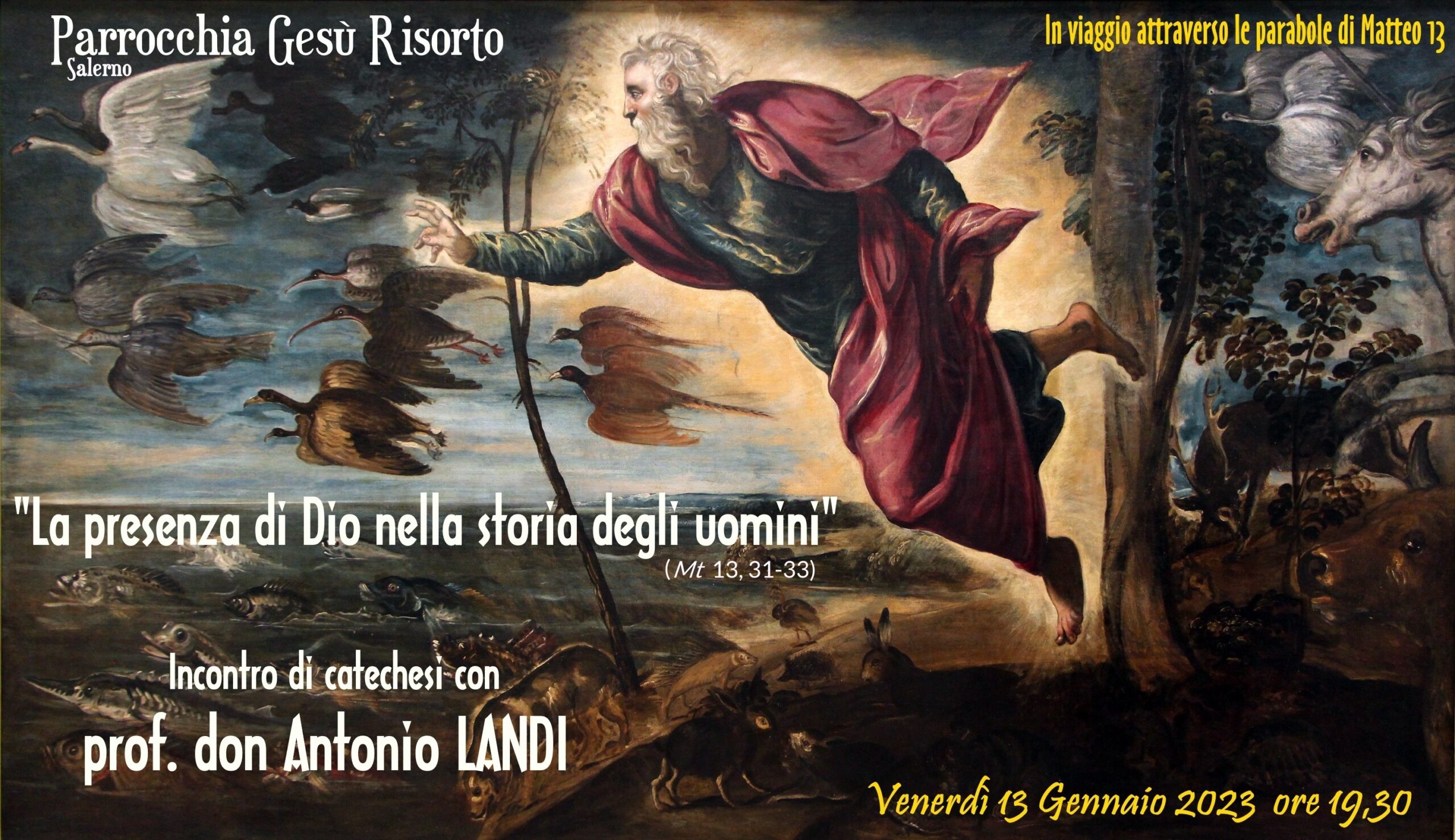 Venerdì 13 gennaio 2023 alle ore 19,30 avremo nuovamente ospite il prof. don Antonio Landi, presbitero della Diocesi Cava-Amalfi e docente stabile di Nuovo Testamento alla Pontificia Università Urbaniana di Roma, che ci guiderà su come discernere sui versi di Matteo 13, 31-33 “La presenza di Dio nella storia degli uomini”.