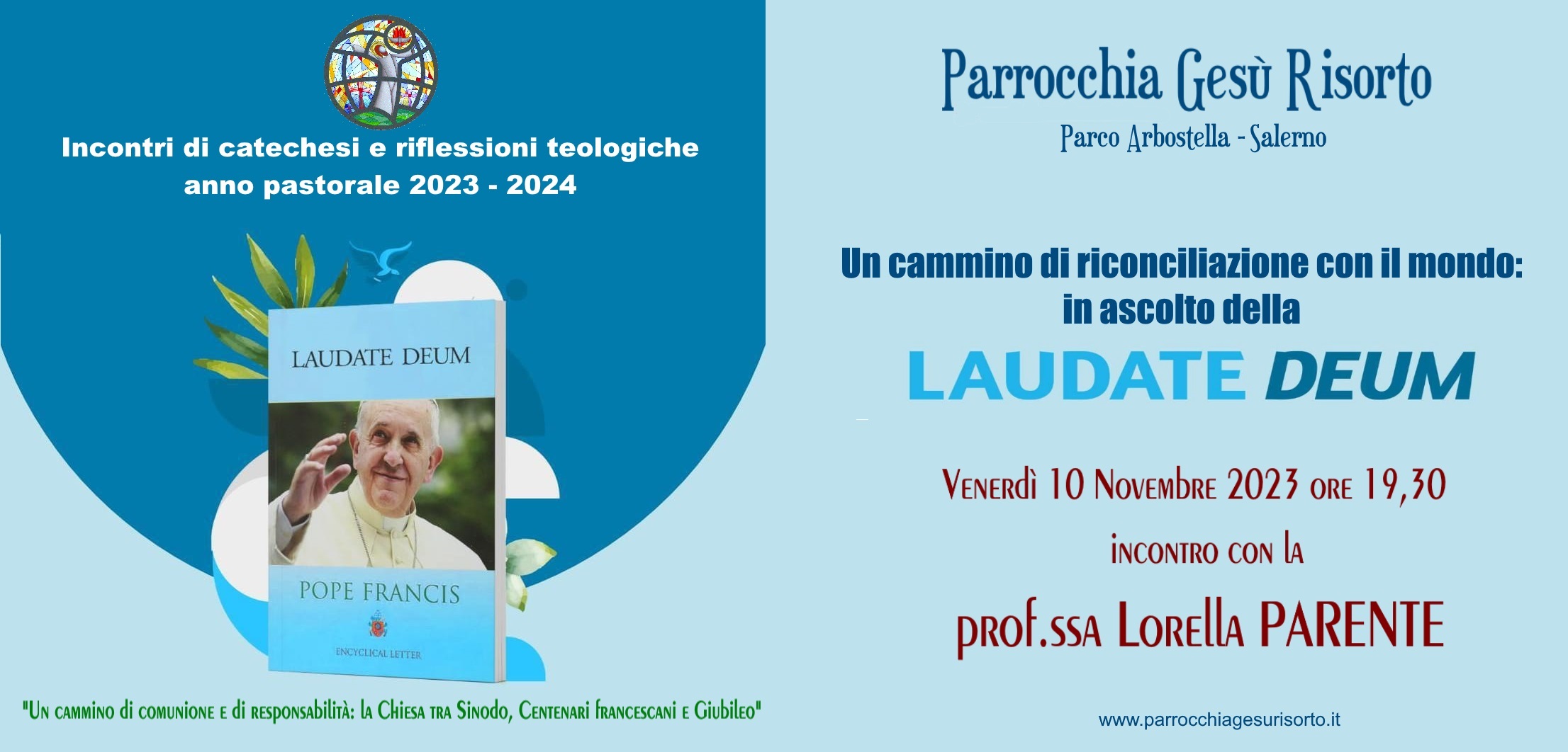 La prof.ssa Parente aprirà con l’introduzione al tema “Un cammino di comunione e di responsabilità: la Chiesa tra Sinodo, Centenari francescani e Giubileo” che accompagnerà la comunità della Parrocchia Gesù Risorto per il nuovo anno pastorale.
