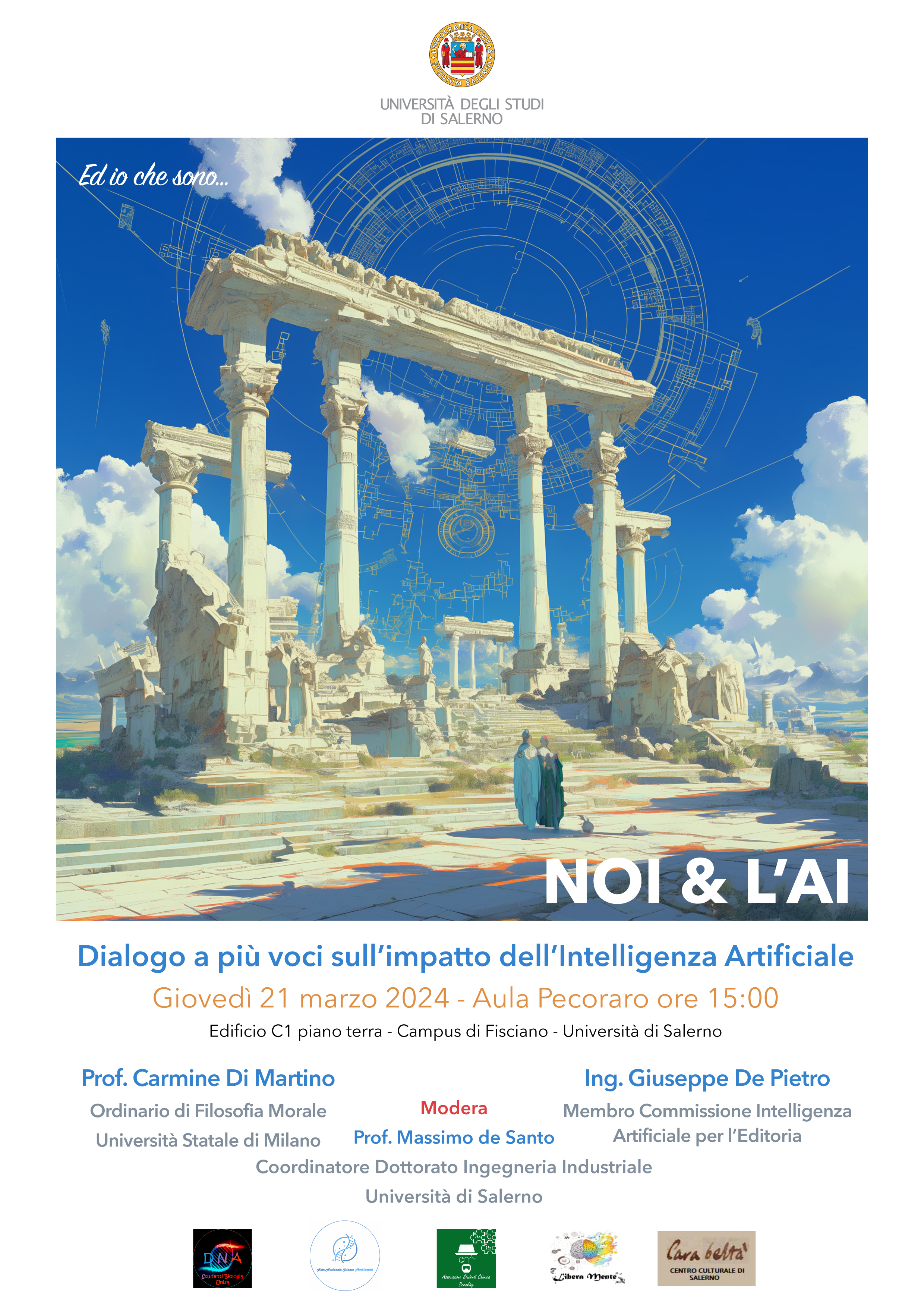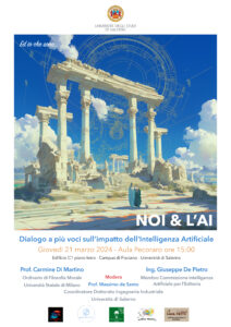La Pastorale Universitaria propone un incontro dal titolo “NOI & L’AI – Dialogo a più voci sull’impatto dell’Intelligenza Artificiale” che si terrà nell’Aula Pecoraro al campus di Fisciano.