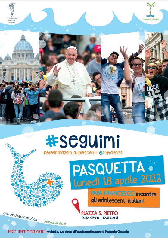Per partecipare al pellegrinaggio degli adolescenti a Roma, #SEGUIMI, sarà possibile effettuare l’iscrizione – insieme alla propria parrocchia/movimento/gruppo – attraverso la Pastorale Diocesana degli Oratori che si incaricherà di raccogliere le adesioni e di fare l’scrizione come DIOCESI.