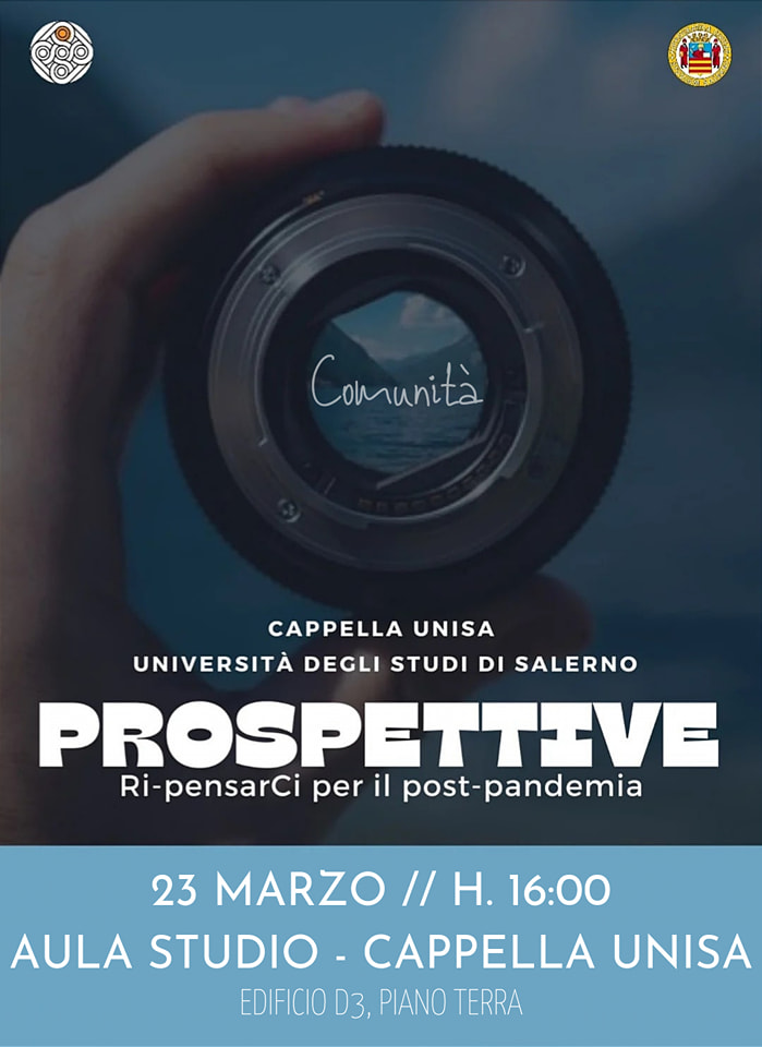 Mercoledì 23 marzo alle ore 16.00 presso la Cappella Unisa si tiene un incontro per confrontarsi e il ri-pensarsi sul post-pandemia organizzato dalla pastorale universitaria.