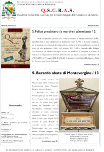 Il numero di dicembre 2023 si apre nuovamente con le reliquie di S. Felice presbiterio e martire salernitano e un santo abate di Montevergine, S. Berardo Abate.