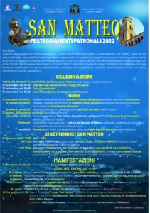 Nei giorni che precedono il 21 settembre, festa del Santo Patrono, si susseguono numerose iniziative come la Visita del Braccio di San Matteo dell’Arcivescovo con la sua parola e benedizione, per arrivare al triduo del 18,19 e 20 che preparerà i fedeli a celebrare con fede e devozione il Santo Patrono.