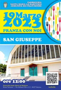Fervono, nell’Arcidiocesi di Salerno-Campagna-Acerno, i preparativi per celebrare la Solennità di San Giuseppe che, liturgicamente, quest’anno cade il 20 marzo. Nell’ambito dei festeggiamenti, in particolare, l’Arcivescovo di Salerno-Campagna-Acerno, S.E. Monsignor Andrea Bellandi, il 19 marzo, alle ore 12, parteciperà al pranzo con i senza fissa dimora organizzato presso i locali parrocchiali di Santa Maria ad Martyres, dal parroco, padre Giorgio Terrasi che intende proporre un momento di condivisione con gli ultimi, in onore di San Giuseppe, Padre e Provvidenza dei poveri.