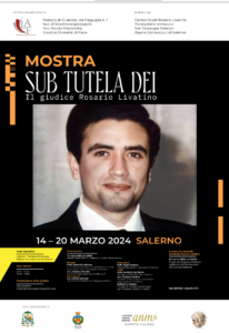 Taglio del nastro, il 14 marzo 2024, alle ore 18, presso il Salone degli Stemmi del Palazzo Arcivescovile di Salerno, per la mostra “Sub tutela Dei” dedicata al beato Rosario Livatino, il magistrato agrigentino ucciso dalla Mafia il 21 settembre del 1990 e proclamato Beato da Papa Francesco il 9 maggio 2021, in quanto “Martire della fede a causa della Giustizia”.