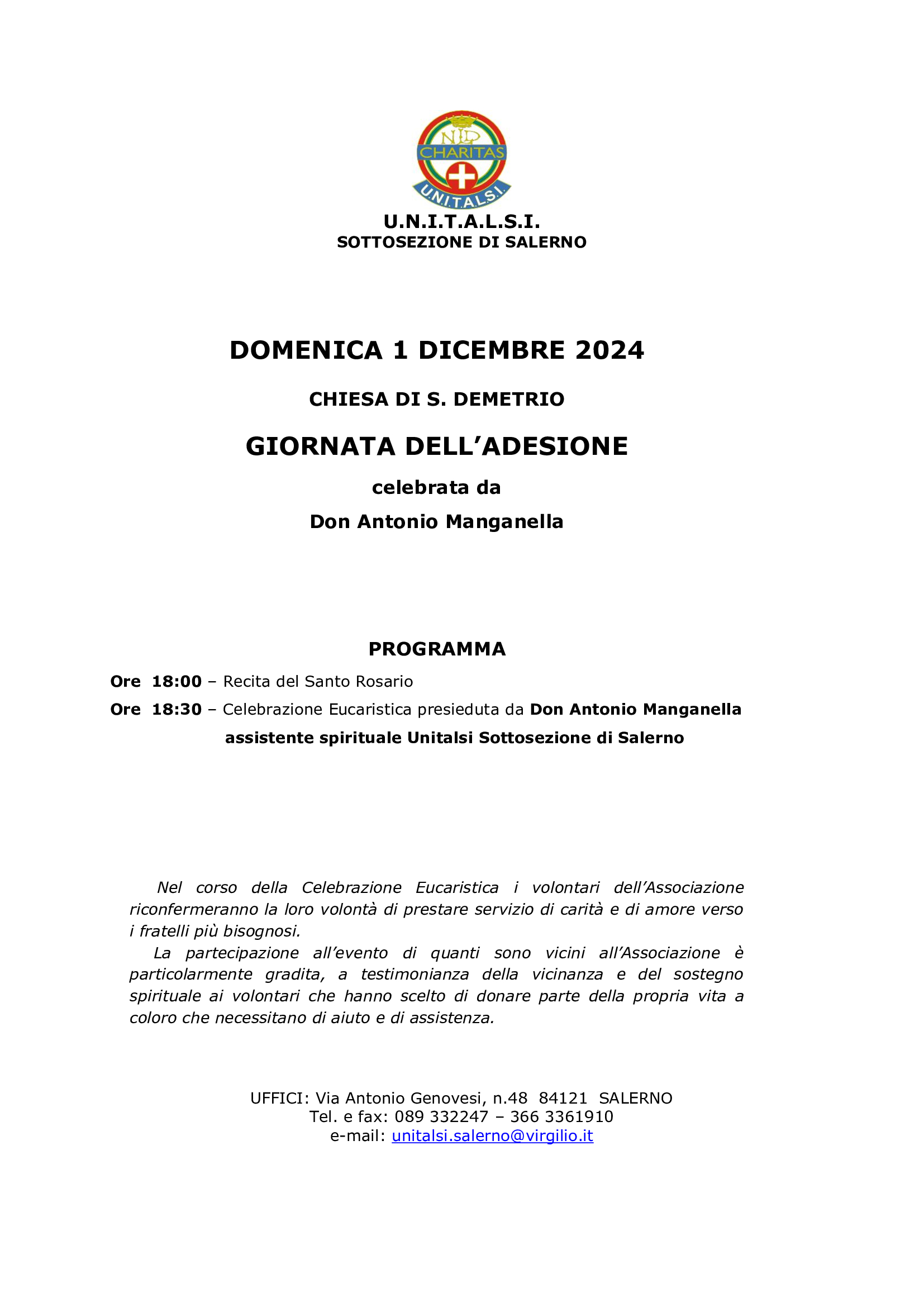Domenica 1 dicembre l’Unitalsi celebra la Giornata dell’Adesione e sarà anche occasione per rinnovare l’iscrizione degli associati. La tessera, simbolo di appartenenza alla realtà associativa, quest’anno ricorda l’annuncio del Tema Pastorale “Con Maria, Pellegrini di Speranza”, in linea con il tema dell’anno giubilare 2025, ed esprime l’intenzione di rimanere memoria del servizio di tutti noi soci dell’Unitalsi.Durante questa giornata è possibile chiedere informazioni e conoscere più da vicino la realtà dell’Unitalsi Diocesana.
