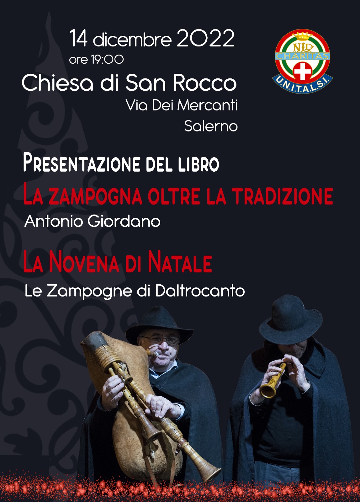 Mercoledì 14 dicembre alle ore 19.00 presso la chiesa di San Rocco in via dei Mercanti, l’Unitalsi Salerno ha organizzato la presentazione del libro “La Zampogna oltre la tradizione” di Antonio Giordano. L’evento sarà accompagnato con la Novena di Natale delle zampogne di Daltrocanto.